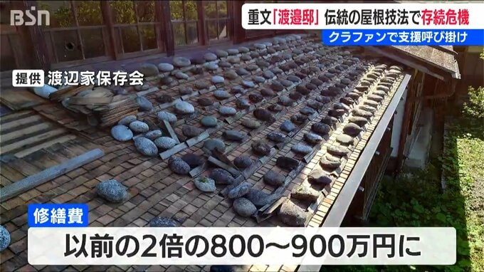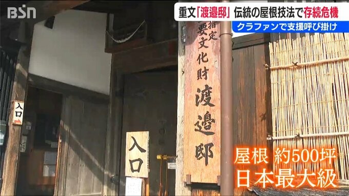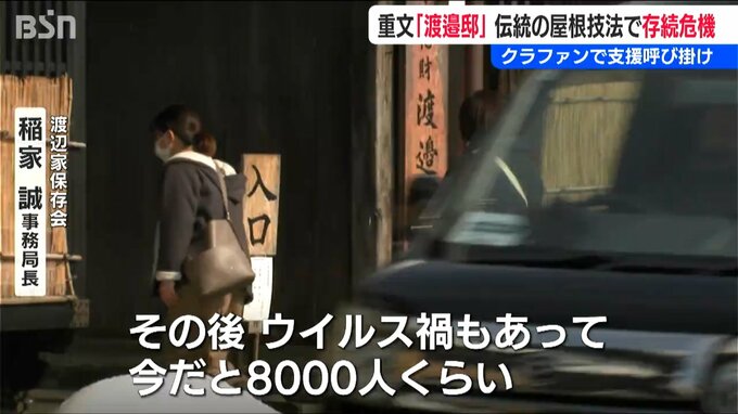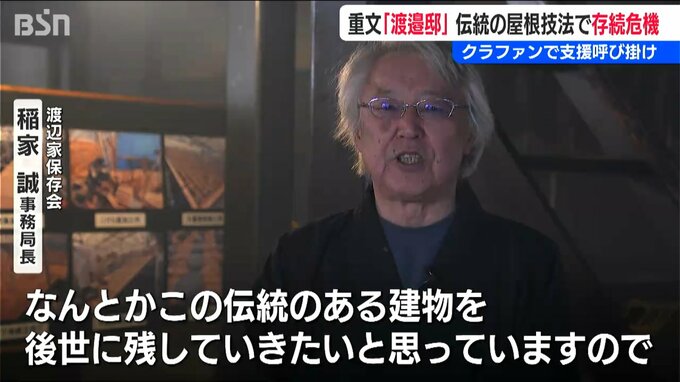 【渡辺家保存会 稲家誠 事務局長】「なんとかこの伝統のある建物を後世に残していきたいと思っていますので、皆様の方からぜひご支援をいただければと」