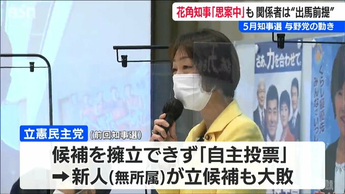 前回の知事選は立憲民主党が候補を擁立できず「自主投票」となり、無所属の新人が名乗りを上げましたが大敗しました。