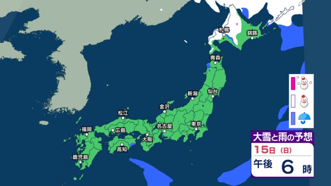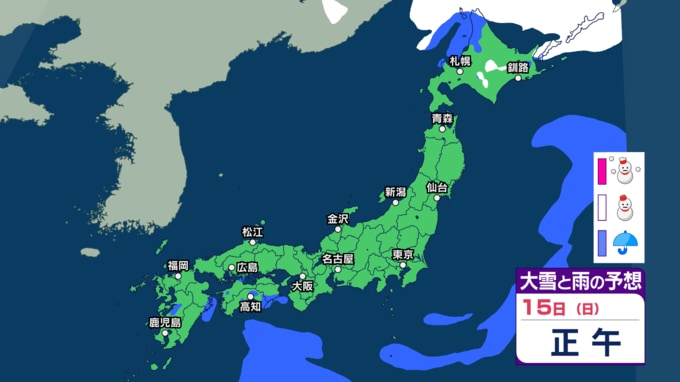 【 今後の雨と雪は? 】“春の陽気”から週明けは再び“冬”に? 北日本や日本海側では雪や雨に注意 15日は気温上昇でなだれに注意を【3時間ごとの雨雪シミュレーション・15日正午更新】