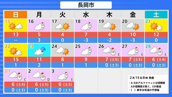 【 新潟の雨と雪は? 】4月並みの気温から一転 あす16日は気温一桁に 寒気の影響で雨や雪の所も【3時間ごとの雨雪シミュレーションと16日間天気予報・15日正午更新】