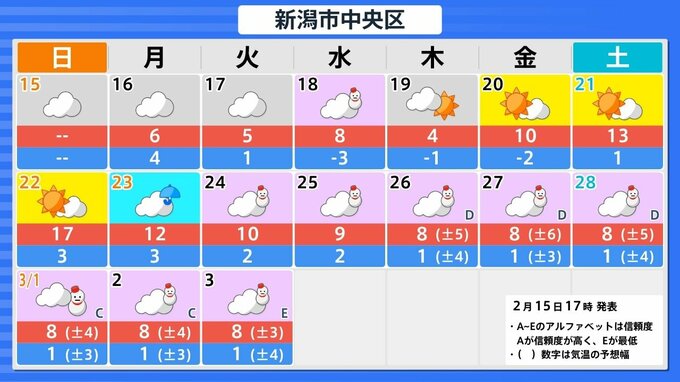 【 新潟の雨と雪は? 】4月並みの気温から一転 あす16日は気温一桁に 寒気の影響で…