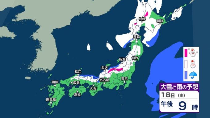 【 今後の雨と雪は? 】一時的に冬型の気圧配置に 16日夜から関東周辺でも雪? 山地では積雪の可能性も 積雪地ではなだれに注意【3時間ごとの雨雪シミュレーション・15日午後9時更新】 2026年2月15日(日) 21:00