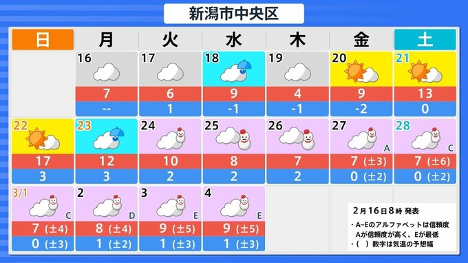 【 新潟の雨と雪は? 】4月並みの気温から一転 あす16日は気温一桁に 寒気の影響で…