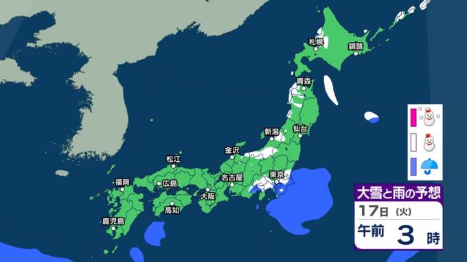 【 今後の雨と雪は? 】17日にかけて冬型の気圧配置に 16日夜から関東周辺でも雪 山地では積雪の可能性も 積雪地ではなだれに注意【3時間ごとの雨雪シミュレーション・16日正午更新】 2026年2月16日(月) 12:00