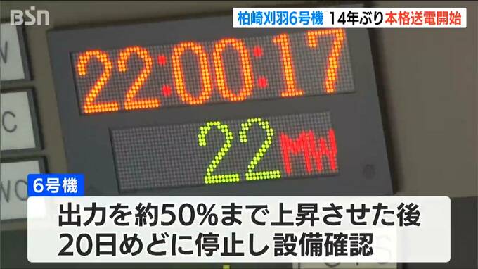 柏崎刈羽原発6号機では16日午後10時に発電機と送電設備をつなぎ、14年ぶりに首都圏などに向けた本格的な送電が始まりました。