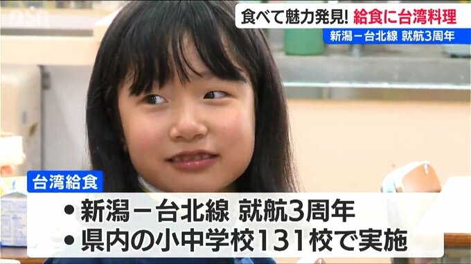 台湾を意識したこの給食、新潟=台北線の就航3周年を記念し、県が食を通して台湾を身近に感じてもらおうと取り組んでいるもので、県内の小中学校など131校で実施されています。