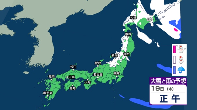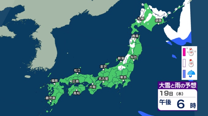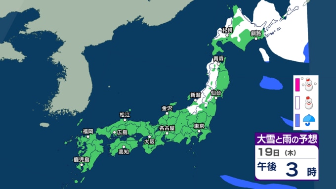 【 今後の雨と雪は? 】北日本では“冬の嵐”に 週末は一転“季節外れ”の春の陽気でなだれに注意 23日は北日本で大荒れの恐れも【3時間ごとのシミュレーション・19日正午更新】