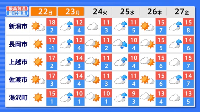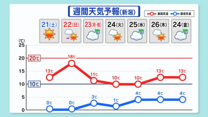 20日の新潟県内は、新潟市中央区で最高気温が3月中旬並みの9.4℃になるなど、過ごしやすい一日でした。