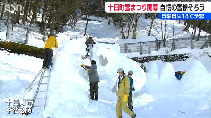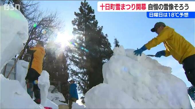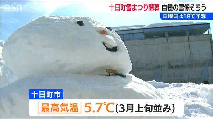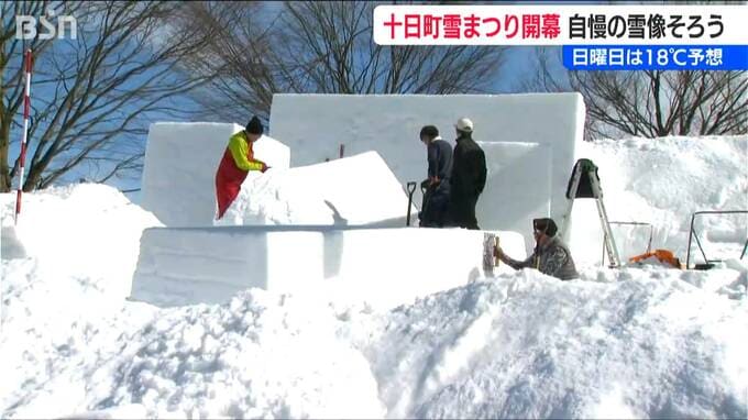 土日も気温上昇が予想される中、雪の扱いは“腕の見せ所”! 市民らが自慢の雪像づくりに汗を流しました。