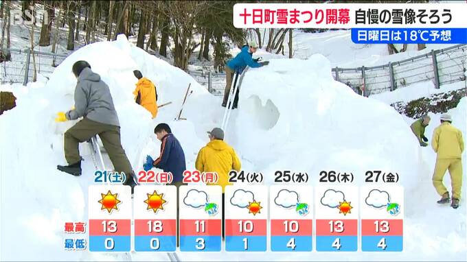 十日町市内各地で合わせて42の雪像が楽しめる『十日町雪まつり』は、あさって22日(日)まで開かれています。