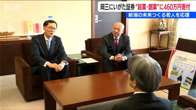 起業や創業に役立ててもらおうと、新潟県長岡市の証券会社などが県に460万円を寄付しました。