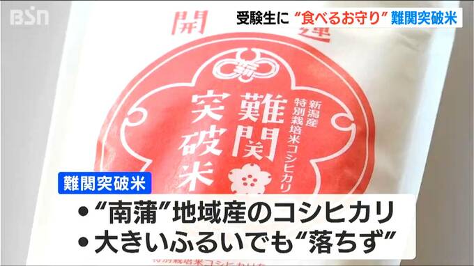 柏崎市の南中学校の3年生に贈られたのは、その名も『難関突破米』です。