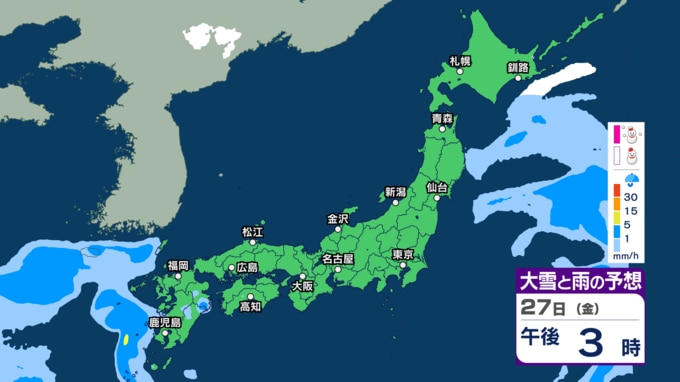 広い範囲で雨 関東の山沿いや東北では大雪のおそれも 関東など冷たい雨 気温大幅ダウン