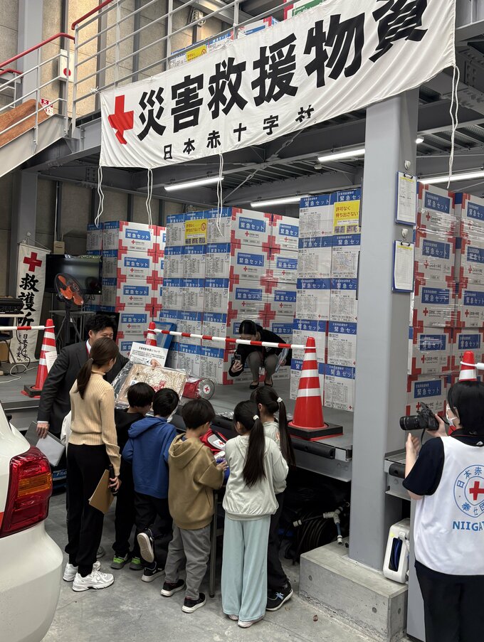 新潟市中央区の日本赤十字社新潟県支部で初めて開催され、災害時に役立つ救援物資の倉庫も見学するなど防災減災の大切さを実感していました。