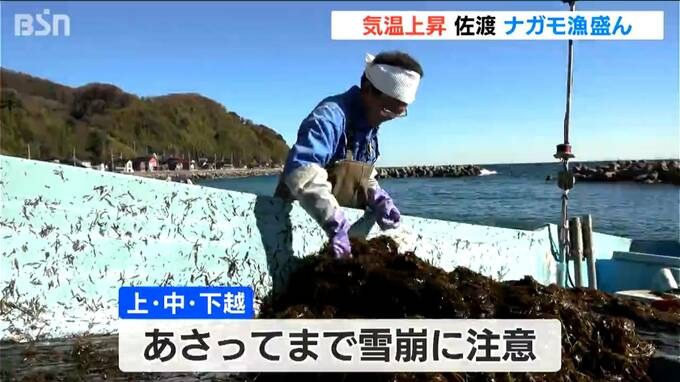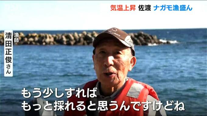 佐渡市では1月から3月にかけて行われるナガモ漁。ここ数年は収穫量が減少しているそうですが、地元の漁師は気温が上がるこれからの季節に期待を寄せています。