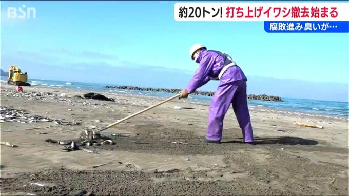 “腐敗臭”漂う20トン 海岸に打ち上げられた大量のイワシ 回収作業始まる 費用は数十万円に 新潟県柏崎市 2026年2月26日(木) 18:35 国内 この陽気で腐敗による臭いが日に日に強くなっています。柏崎市の海岸に打ち上げられていた大量のイワシ、26日から撤去作業が始まりました。およそ20トンに上ると見られています。柏崎市の石地岸に今週初め頃、打ち…