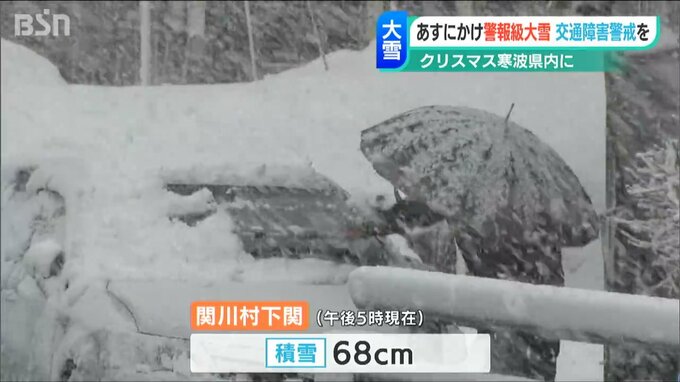 関川村には、午後5時現在で68cmの雪が積もっています。