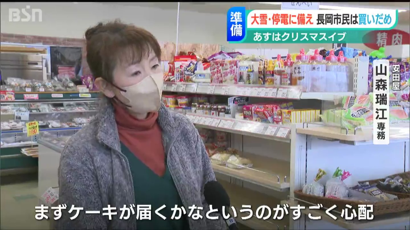 「クリスマスイブでケーキのご注文もかなりいただいているので、まずケーキが届くかなというのがすごく心配。この地域に一軒しかないスーパーなので、休むわけにはいかない」