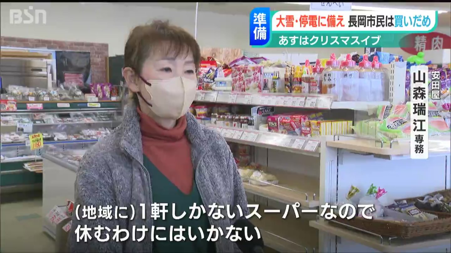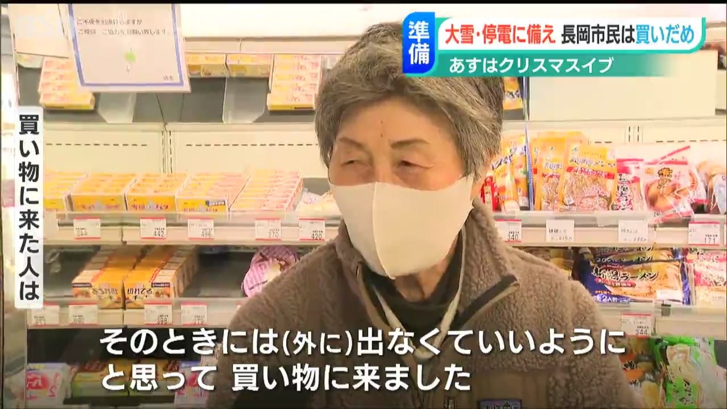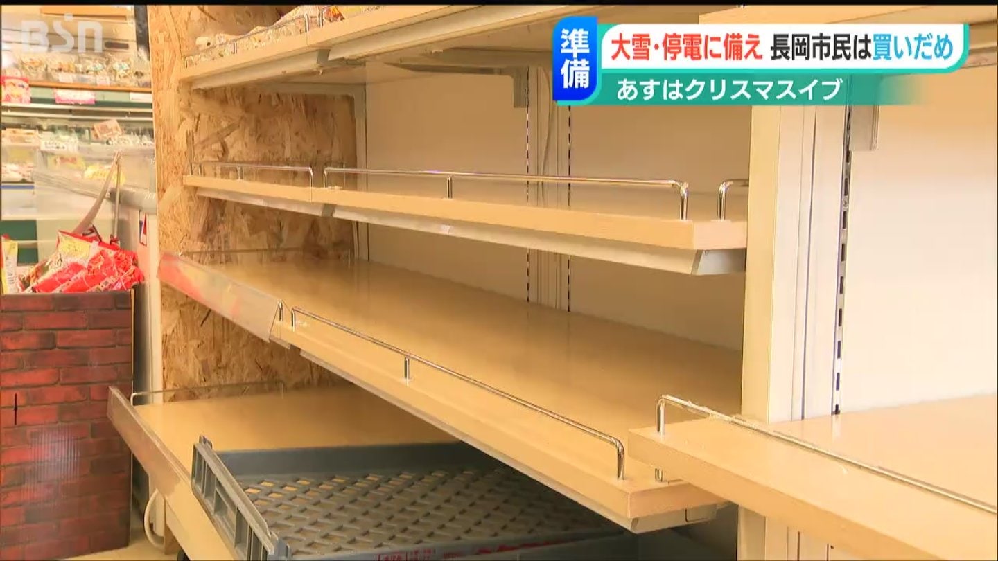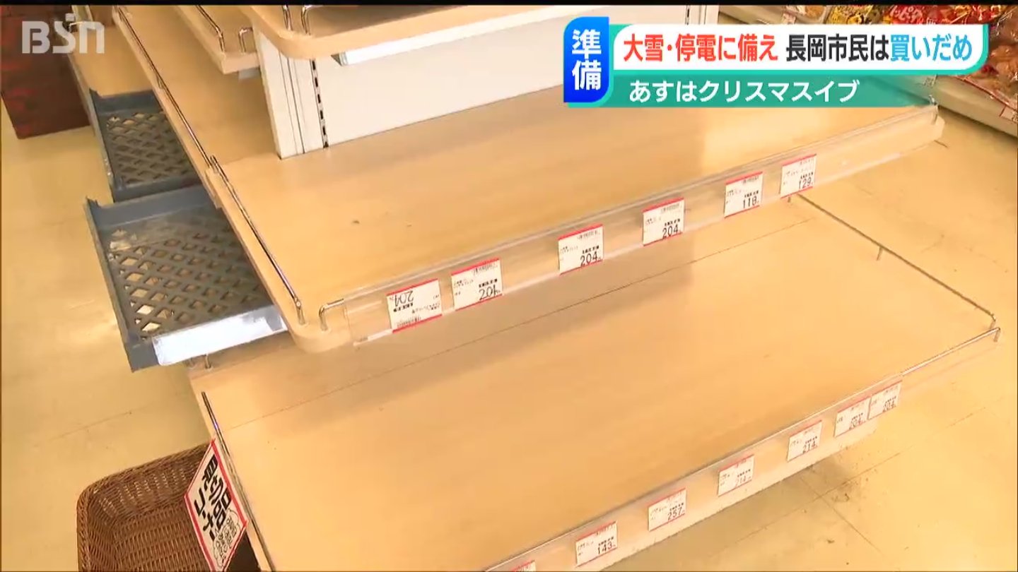 大雪への備えで、新潟県長岡市のスーパーでは、大雪の中で停電しても外出せずに乗り切れるようにと、食料や“ろうそく”などを買いだめする人の姿が見られました。