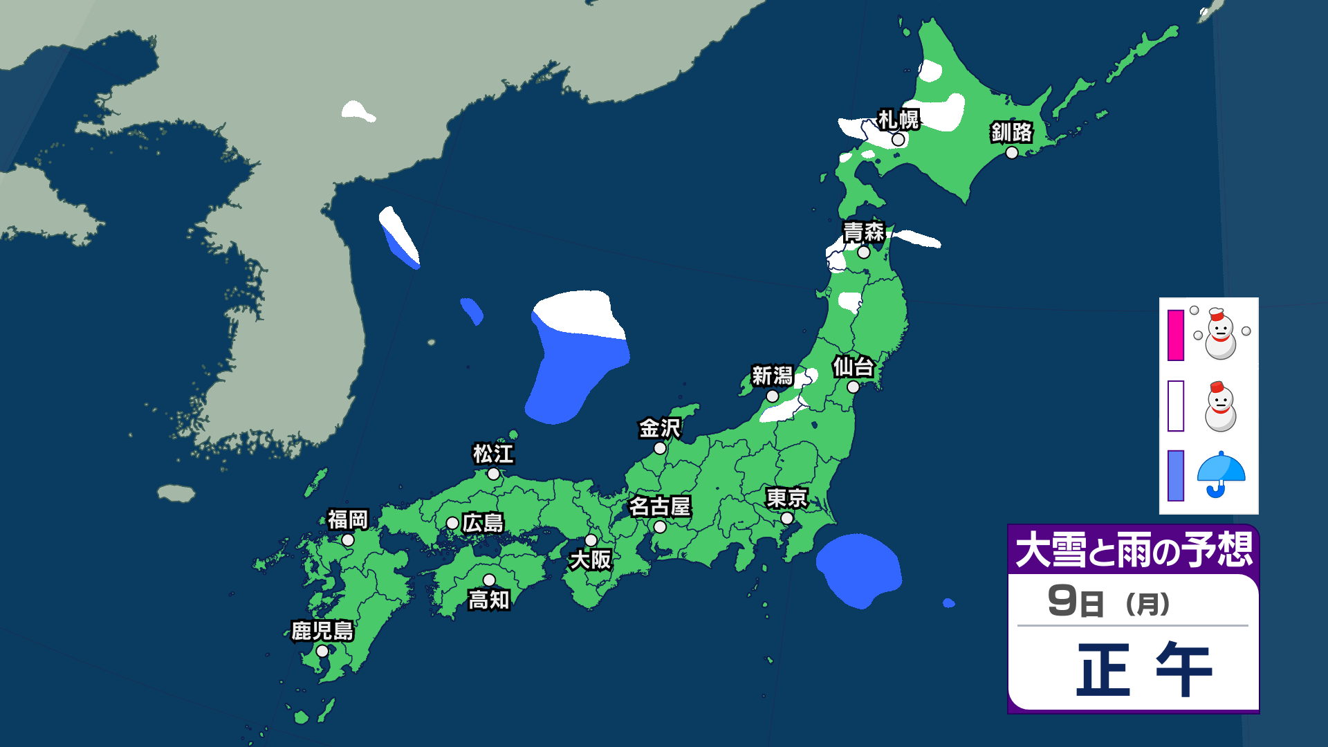 【今後の雨と雪は?】きょう8日は冬型の気圧配置が続き日本海側で雪の所も 10日ごろも広い範囲で雨や雪 北日本や北陸で大雪の可能性も【3時間ごとの雨雪シミュレーション・8日正午更新】 | 新潟のニュース・天気|BSN NEWS|BSN新潟放送
