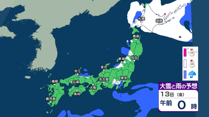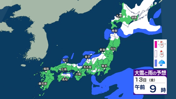 10日は関東周辺でも雪? 寒気の影響で日本海側を中心に雪に 北日本では大雪に注意を 週後半も再び雪か【今後3時間ごとの雨雪シミュレーション・8日午後10時更新】