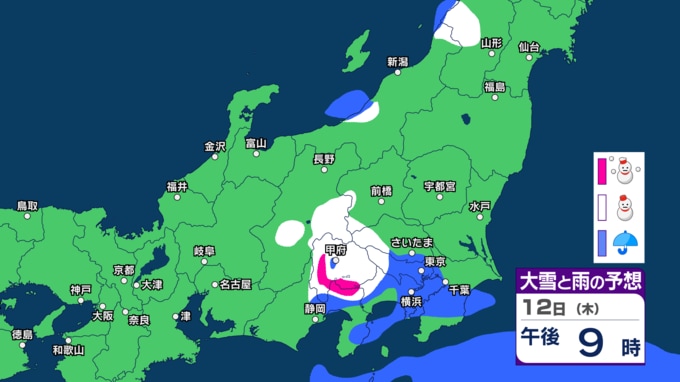 10日朝は関東で大雪か 関東北部の平地で10日朝までに5cm予想 通勤通学に影響も? 西日本~東日本は“天気の急変”に注意 12~13日も関東周辺で雪か【今後の雨雪シミュレーション・9日正午更新】 2026年3月9日(月) 12:00