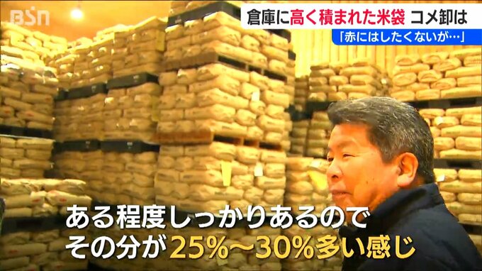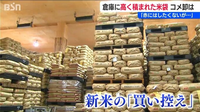 倉庫には例年より3割ほど多い在庫が…背景にあるのは新米の「買い控え」だと言います。