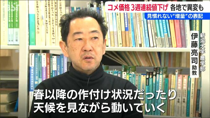 【新潟大学 伊藤亮司 助教】「大きな流れは下がっていくということをベースに動き始めているけれど、それが実際に広がるかどうかは、春以降のその作付け状況だったり、天候を見ながら動いていく」