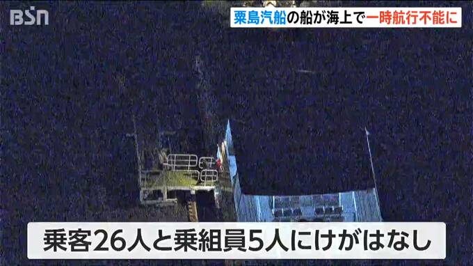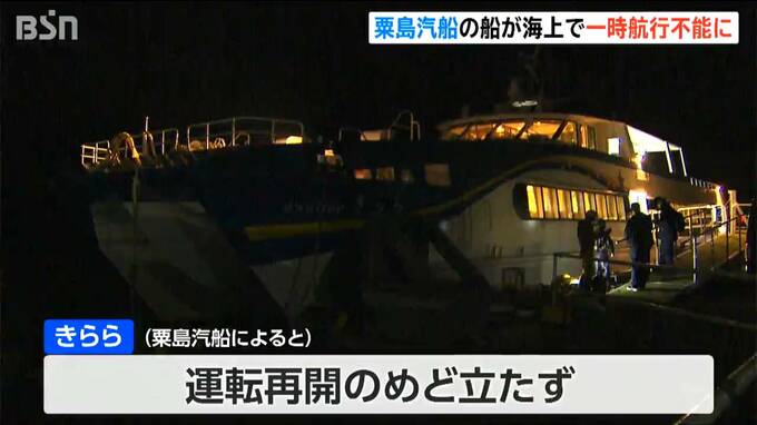新潟海上保安部と粟島汽船によりますと、24日午後3時ごろ、岩船港を出港して5分くらいで何らかのトラブルによりエンジンが緊急停止。その後、船が座礁したということです。