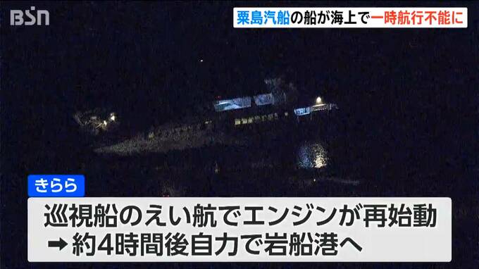新潟海上保安部の巡視船が船をえい航したところ、エンジンが再始動。およそ4時間後、自力で岩船港に戻りました。
