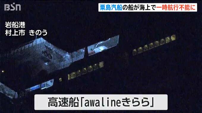 24日、新潟県 村上市の岩船港を出た粟島汽船の高速船がトラブルによりエンジンが止まり一時、航行できなくなりました。船は4時間後に港に戻り、乗客・乗員あわせて31人にけがはありません。