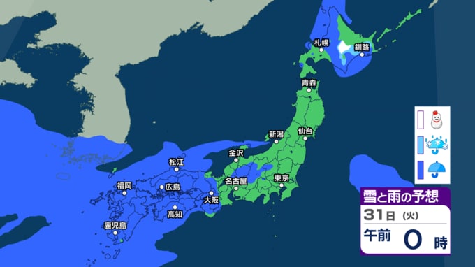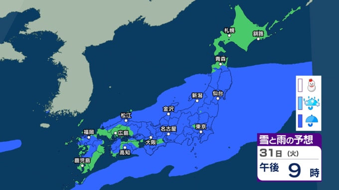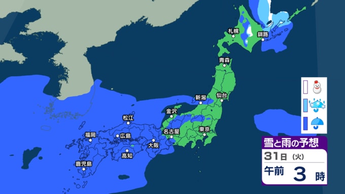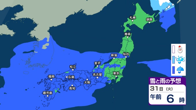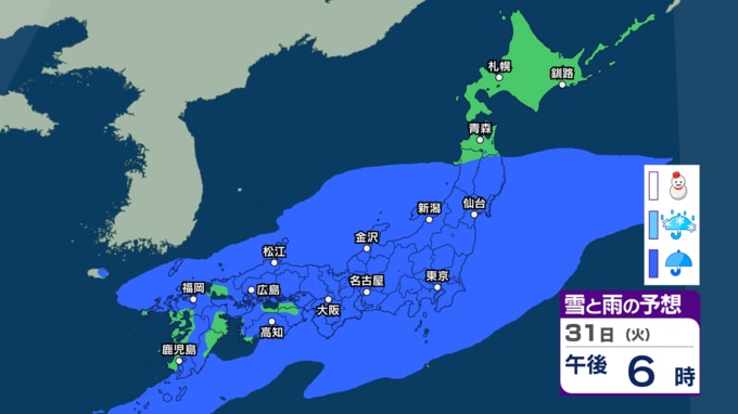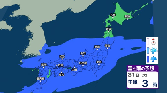 大気の状態が不安定で天気の急変に注意 30日~31日は西~東日本で前線の活動が活発となり大雨か 警報級大雨の恐れも【今後の雨・雪のシミュレーション・27日正午更新】 2026年3月27日(金) 12:00 31日(火)の雨と雪のシミュレーション
