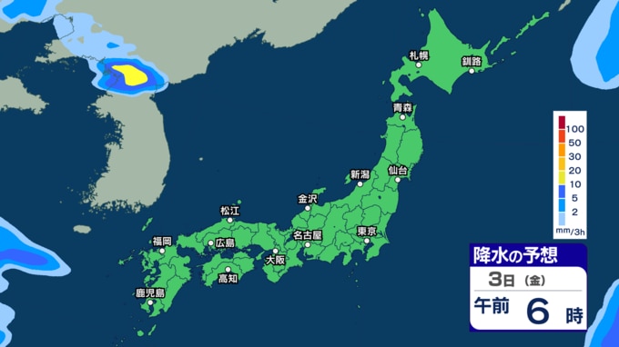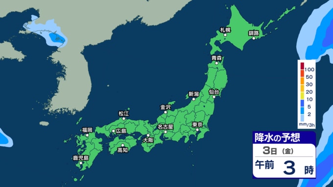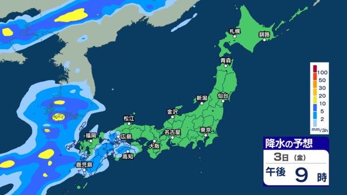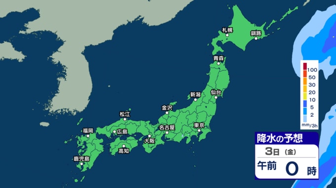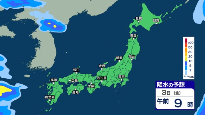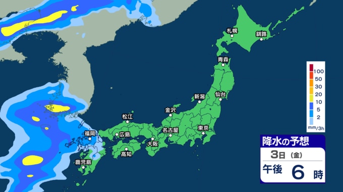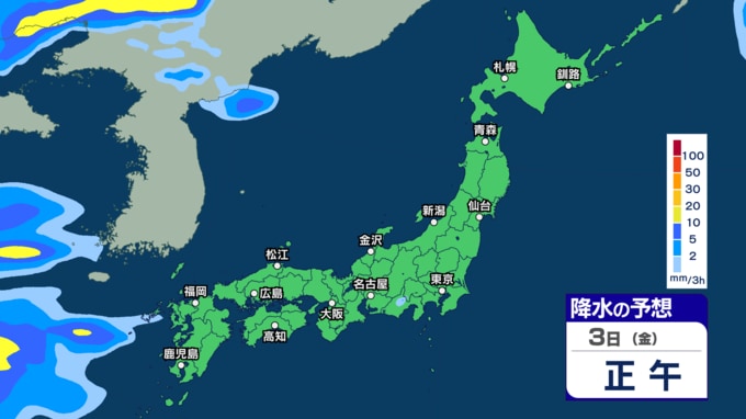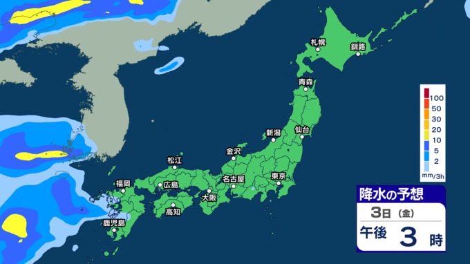 あす30日から31日は西~東日本で雷伴う非常に激しい雨の恐れ 4月スタートは東日本太平洋側などで「警報級大雨」の恐れ【30日~4月3日の雨シミュレーション・29日午後8時更新】 2026年3月29日(日) 11:00 3日(金)の雨のシミュレーション(3時間ごと)