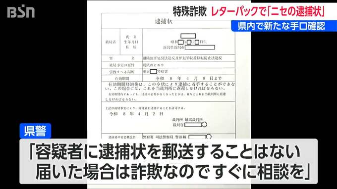 新潟県警は、逮捕状を送りつけてくる新たな手口を4月になってから2件確認していて、いずれも未遂だということです。