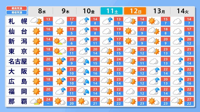11日(土)〜12日(日)は北日本で「大荒れ・大しけ」か