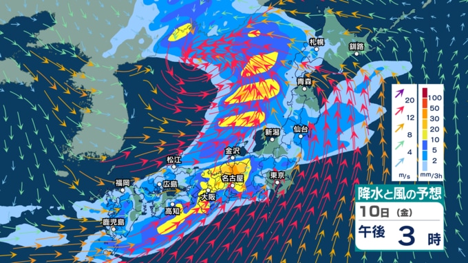 【 今後の雨 】9~10日は雷伴う“バケツをひっくり返したような”激しい雨が降り大雨か その後も荒れた天気に?【8日(水)~13日(月)午後3時の雨シミュレーション・8日正午更新】 2026年4月8日(水) 12:00 10日(金)の雨のシミュレーション