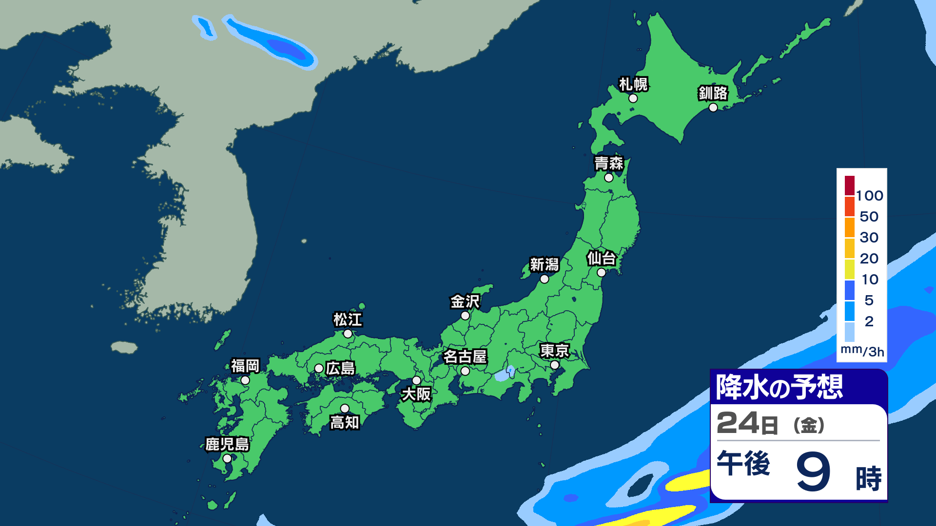 【 今後の雨 】西日本で雷を伴う激しい雨の所も 週後半の23~24日は各地で雨強まり西日本では警報級大雨の恐れ【20日(月)~24日(金)の雨シミュレーション・19日午後9時更新】 2026年4月19日(日) 21:00 24日(金)の雨のシミュレーション
