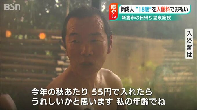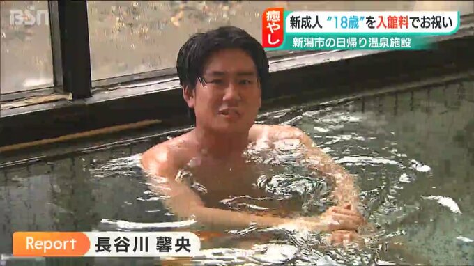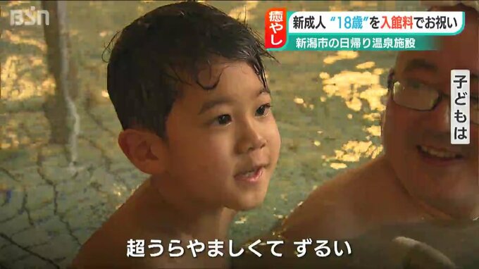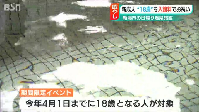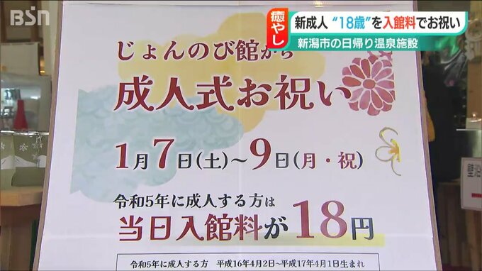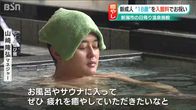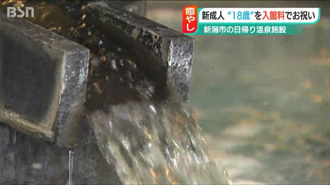 新潟市西蒲区の日帰り温泉施設では成人になった18歳を祝おうと、お財布に優しいあるイベントが行われています。