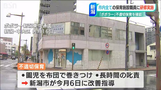 新潟市は、認可外保育施設で園児に不適切な保育が行われていた問題を受け、市内全ての保育施設を対象に動画を使った研修を実施すると明らかにしました。