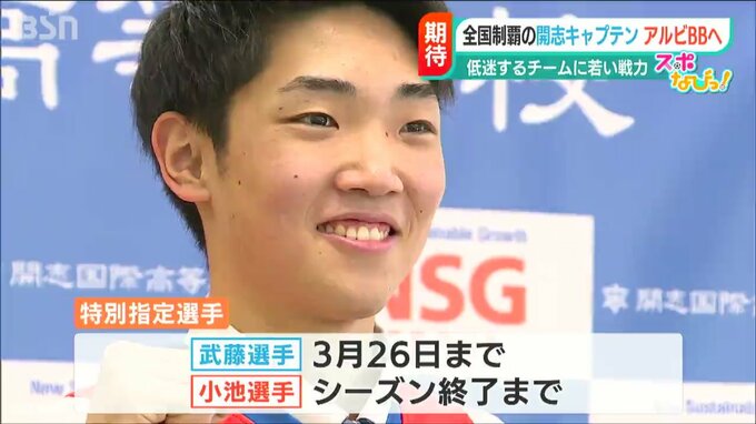 特別指定選手としてBリーグ・新潟アルビレックスBBに加入するのは、開志国際高校3年の武藤俊太朗選手と、開志国際高校のOBで、日本経済大学4年の小池文哉選手です。ともに新潟市出身の2人にはある共通点が…