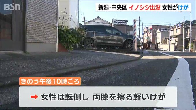 18日夜、新潟市中央区の住宅街でイノシシが出没しました。歩いていた50代の女性がイノシシに突進され、転倒した際に軽いけがをしたということです。