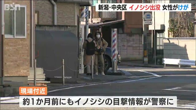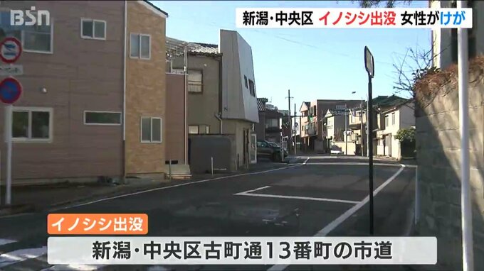 イノシシが出没したのは新潟市中央区古町通13番町の市道です。警察によりますと、18日午後10時ごろ中央区に住む50代の女性が歩いていたところ、イノシシ1頭が前から突進してきたということです。