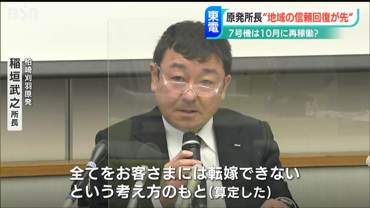 【柏崎刈羽原発 稲垣武之所長】「再稼働時期は料金算定上の仮定なので、そこは企業としての判断。地元の信頼を頂戴するまでは、『再稼働の“サ”の字も申し上げません』と約束している」