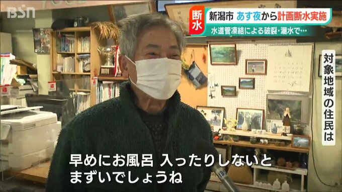 【新潟市水道局 帆苅功 部長】「マイナス5度とか氷点下の気温が連続するとか、強風が重なるとか、同じようなことが繰り返されれば(断水は)仕方ないですけど、同じ区域をやることは避けたいと思っています。凍結防止のために一晩中、極端な話、一日中ずっと流しっぱなしにするとかを控えてくださいということを繰り返し言っていきたい」