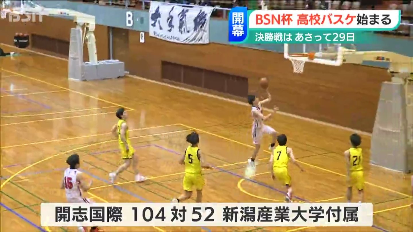 51回目の今年は男子68チーム・女子49チームが出場し、トーナメント戦で県内ナンバーワンを目指します。男子トーナメントでは、先月のウインターカップで優勝し、県勢初の全国一に輝いた開志国際高校は初戦で新潟産業大付属高校と対戦しました。