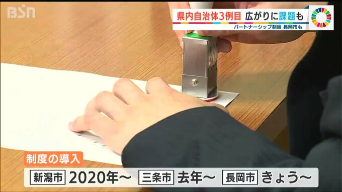【長岡市 人権・男女共同参画課 穂刈美枝課長】「性的指向や性自認によって生きづらさを抱えている人、困っている人がいらっしゃると思いますので、そういったことを解消して誰もが暮らしやすく、多様性を認め合える長岡市にしていきたいと考えてこの制度を開始しました」