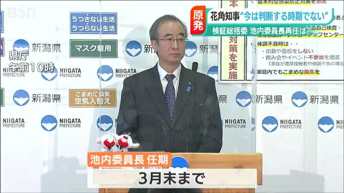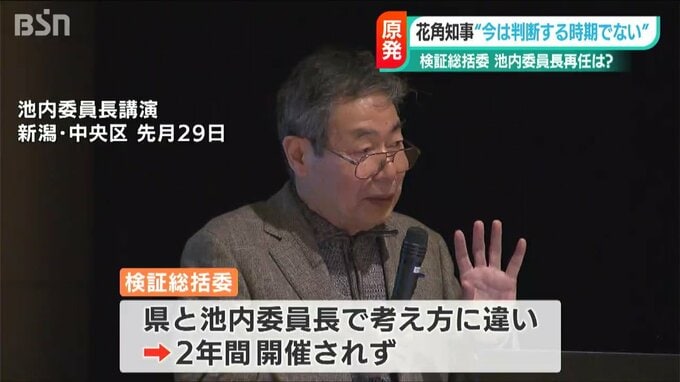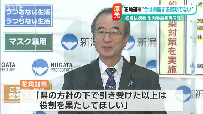 原子力発電所に対する新潟県独自の3つの検証をめぐり、県との意見の食い違いが続く検証総括委員会の池内了(いけうち・さとる)委員長の再任について花角知事は、「今は判断する時だと思わない」と述べました。