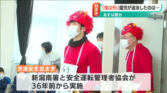 新潟南警察署と地域の安全運転管理者協会が36年前から節分に合わせて行っているこの豆まき。