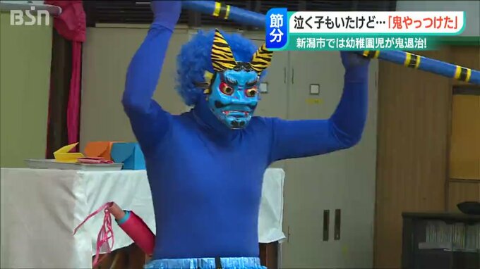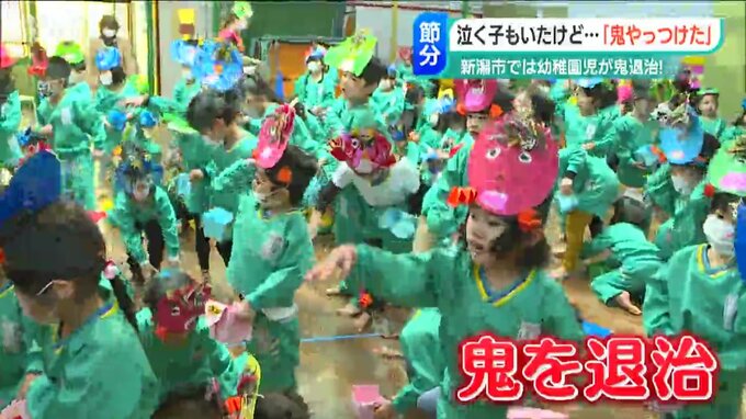 新潟市中央区の幼稚園でも、みんなで「豆まき」をしました。