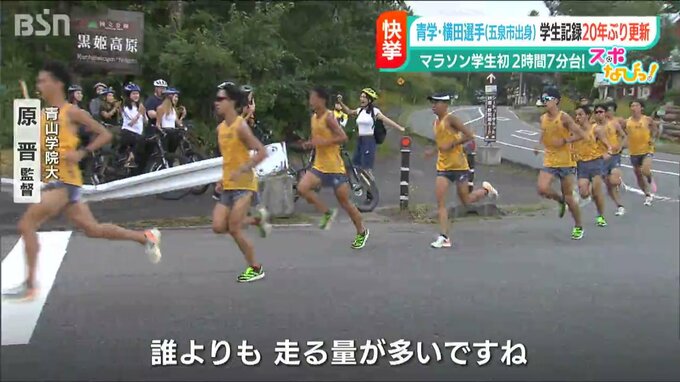 5日に大分県で開かれた大会で、五泉市出身の青山学院大学の4年生・横田俊吾選手が日本人2位に入り、学生初の2時間7分台で、20年ぶりに学生記録を更新しました。